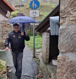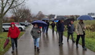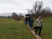Dann machte sich die Karawane mit Regenschirmen und wasserdichter Kleidung auf den Weg die Limburg zu umrunden. Eine gute Stimmung und viele Gespräche ließen uns den Regen fast vergessen und bald kamen schon die ersten Häuser von Weilheim in Sicht.