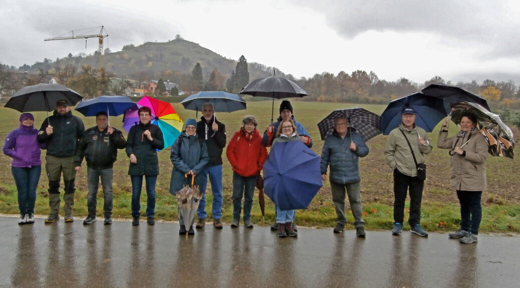 Dann machte sich die Karawane mit Regenschirmen und wasserdichter Kleidung auf den Weg die Limburg zu umrunden. Eine gute Stimmung und viele Gespräche ließen uns den Regen fast vergessen und bald kamen schon die ersten Häuser von Weilheim in Sicht.